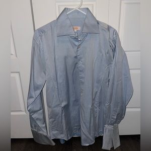 ASOS DESIGN Premium easy iron slim fit twill shirt with cutaway collar in blue