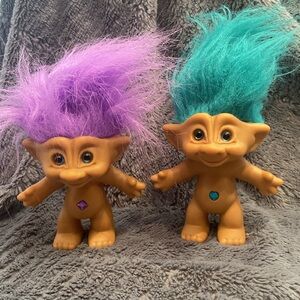 🍭Set of 2 Ace Novelty blue-eyed troll dolls with bellies gems and their outfits
