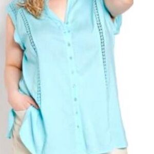 BLOUSE, TEXTURED, BUTTON DOWN TUNIC, ¾ SLEEVES, MERMAID BLUE, SZ 24, ADDITION EL