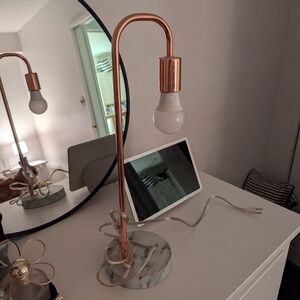 rose gold lamp with faux marble base
