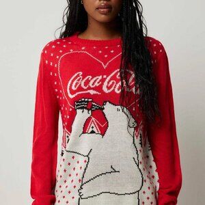 Coca Cola Ugly Christmas Cardigan Sweater Coke Polar Bears Red Black Size Small