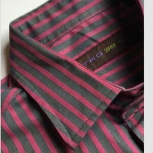 Men's Etro brushed cotton shirt in red, charcoal, pink, magenta stripe. Sz 39