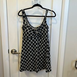 Gabar One Piece Swimsuit Square Neck Sarong Reflective Geo Womens Size 14 D NEW