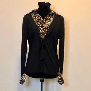 GOLLEHAUG Collection long sleeve NAVY sweater w Fuschia/Grey design Size 10