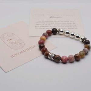 Rhodonite and Silver Hematite with Zircon in Copper Charm Gemstone Bracelet