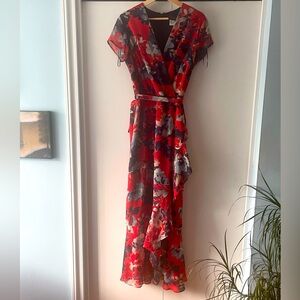 JUST TAYLOR High Low Maxi Dress Chiffon Wrap in Floral Print. Size 8
