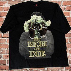Vtg Get Rich or Die T-Shirt 3D Men's 4XL Velvet Street Wear Hip Hop Rap Tee RARE