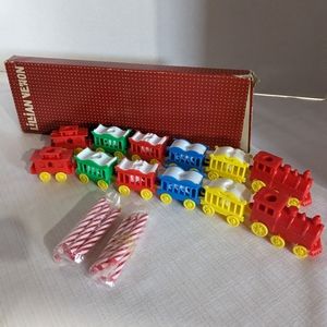 VTG Lillian Vernon plastic circus trains cake toppers candle holders (set of 12)