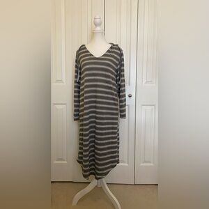 Max Studio Sleepwear Grey and White Striped Women’s Nighty With Hood Size M
