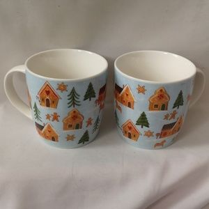 Set of Two Gingerbread Man & House Winter Theme Mugs by Milly Green, Britain