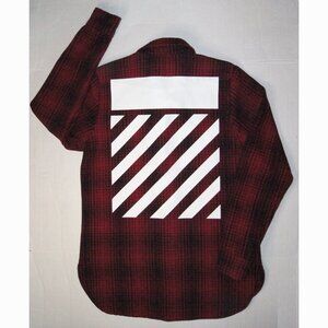 Off-White Virgil Abloh Thick Heavy Wool Flannel Shirt Jacket Puff Print Plaid XS