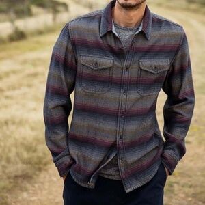 Outerknown Blanket Shirt Men's Large Brown Flannel Striped Revivalist