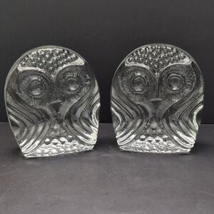 VGT,Clear Art Glass Pilgrim Owl Bookends.