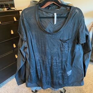 Ribbon • Grey & White Striped Waffle Tank Top Size Small