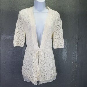 Soft Surroundings Frock Cardigan Sweater Linen Women's M Open Knit Frills White