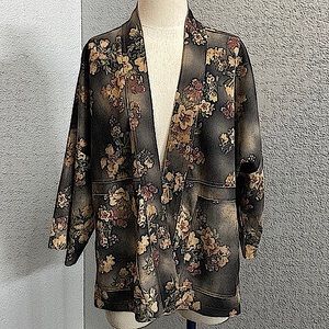 Solitaire Brown Fall Floral Open Front Long Line Cardigan Size S