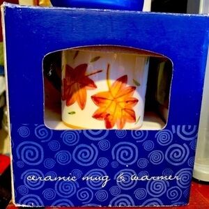 Hand Made Ceramic Floral Ivory and Blue Coffee Mugs Tea Cups