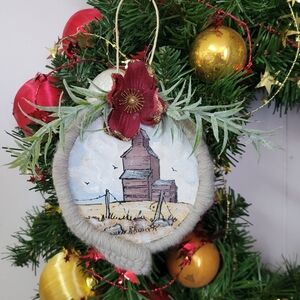 Christmas Ornament Hand Painted Macrame Upcycled Elevator