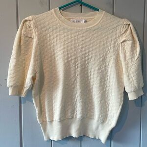 5/$25 Knit Mix Cream Short Puff Sleeve Quilted Knit Crew Neck Top L