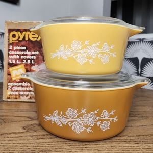 Vintage Pyrex Butterfly Gold Casserole Dish With Clear Lid