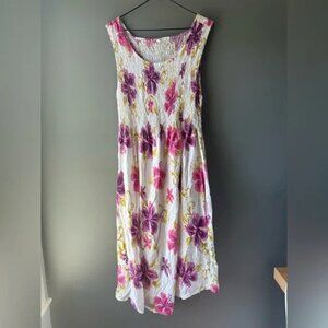 Revamped size M Women's White Smocked Top, long sleeve, ruched waist