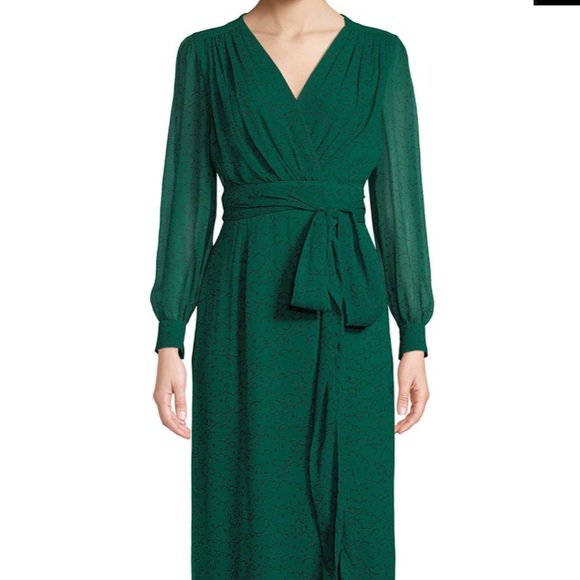 Escada Dresses & Skirts - Escada Green & Black print faux wrap dress.