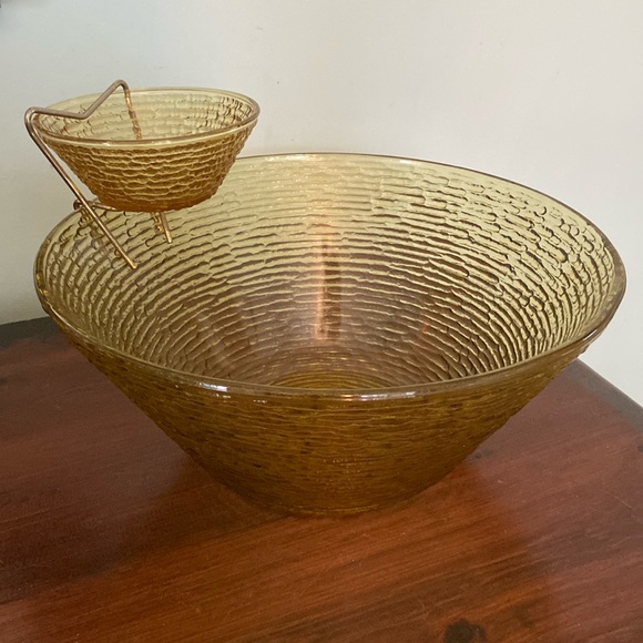 Beautiful Mid Century chip and dip set and love the gold color and the ridged pattern. So Retro!ove my purchase!