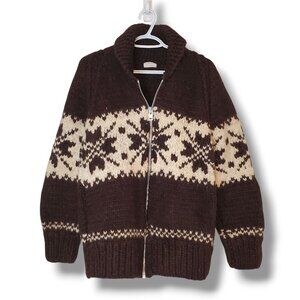 Vintage 90s Winter Themed Knit Cardigan Sweater Tan Size XL