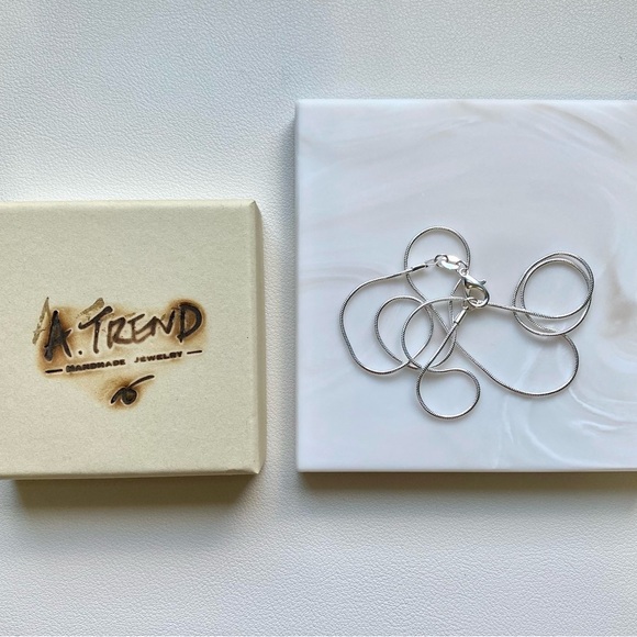 Beautiful sterling silver chain! It arrived well protected in a little plastic bag within a cute little jewelry box with a thank you card that had care instructions and a polishing cloth was included! I will definitely be revisiting this closet for more hand crafted jewelry.