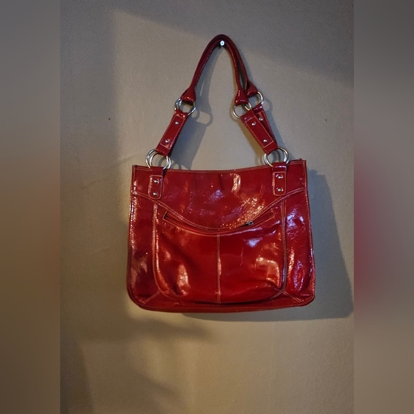 I love this purse. The color is perfect. It is large and I love the patten leather look. I was fortunate I got it after our mail almost destroyed the box. Sometimes they are not very careful. Thank you so much