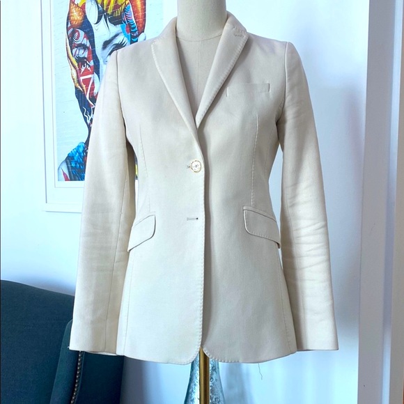 It is a beautiful blazer but the arms were meant for a size 0. Im 5'2 120 and can into the blazer but need help getting it off because it's very very tight.