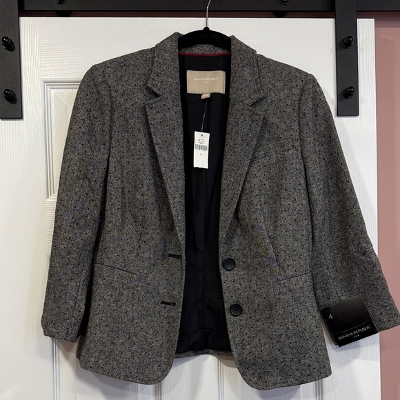 Brand new with tags. Absolutely beautiful fitted jacket. The pattern is very pretty. It has three quarter sleeves which makes it nice to wear both casually or for the office. Super fast shipping. Came a day early. Thanks Amanda. I will follow you.