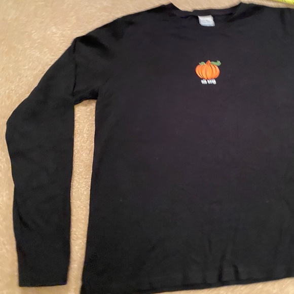Love the Old Navy black long sleeved T-shirt with bright orange pumpkin design. Thank you so much:)