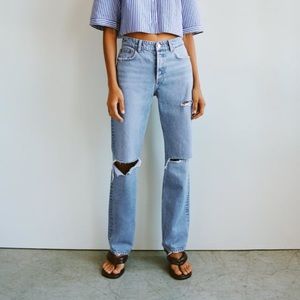 Zara Light Wash Mid Rise Distressed Straight Leg Full Length Jeans