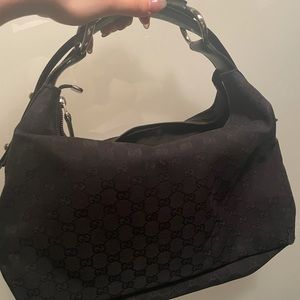 Gucci Black Leather Belt Bag with Red & Green Web Stripe