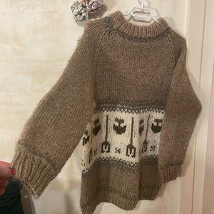 Wool hand knit sweater mocha grey cream soft neutral palette sz med/ Large