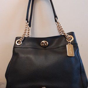 Coach Turnlock Edie Pebble Leather Shoulder Bag Black