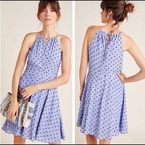 Blue polka dotted a-line dress ATHROPOLOGIE
