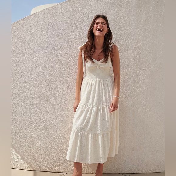 I own this dress in two other colors in size Small and this garment is definitely stretched out. It fits like a Medium. I’ll have to resell unfortunately. I suspect the seller did wear it, and hid the tags. But it’s still in very nice condition!