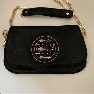 TORY BURCH Amanda Clutch w/ Gold Logo & Strap