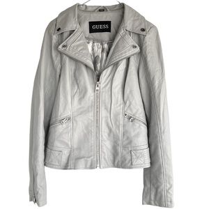 GUESS, Faux Leather Jacket, Silver, Size Small