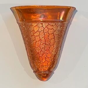 Vintage Carnival Glass Wall Pocket, Iridescent Orange