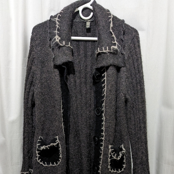 Very unique sweater/cardigan, quite the conversation piece, lovely packaging, very nice card & a lovely gift necklace on leather cord. I highly recommend this seller.