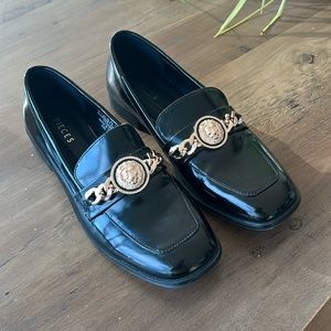 Black Vegan Leather Loafers with Gold Buckle - size 39 / 8.5