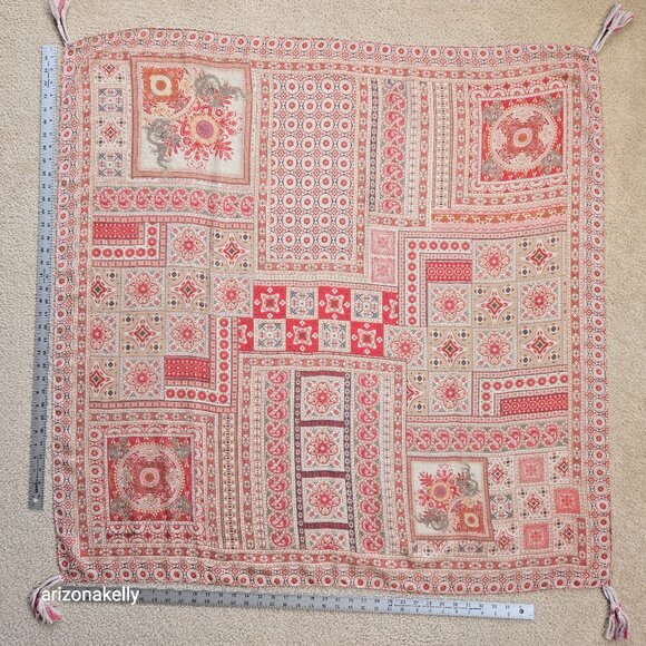 Beautiful scarf arrived in good condition with very careful, beautiful, packaging and fast shipping. I recommend this seller and would gladly do business with her again. Thank you for the great experience!