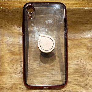 iPhone XR with Finger Ring Clear Geometric Texture Rose Gold Border GUC
