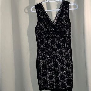 Black mini dress with lace cutouts