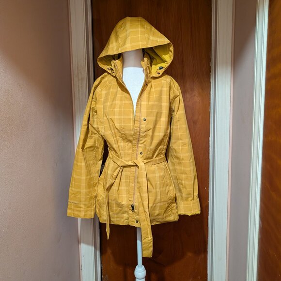the rain jacket came exactly as described and pictured, with tags still in tact! looks and fits beautifully, so i'm excited to use it for the upcoming spring showers here. seller packaged well, with a matching yellow tissue paper to wrap the rain jacket with, and left a beautiful handwritten thank you card.