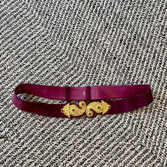 Belt as described. Color is still vibrant and as shown leather is in need of help. Thank you for sharing. Best, Linda