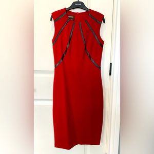 Gently used gorgeous red Danier leather bodycon dress with leather detail.